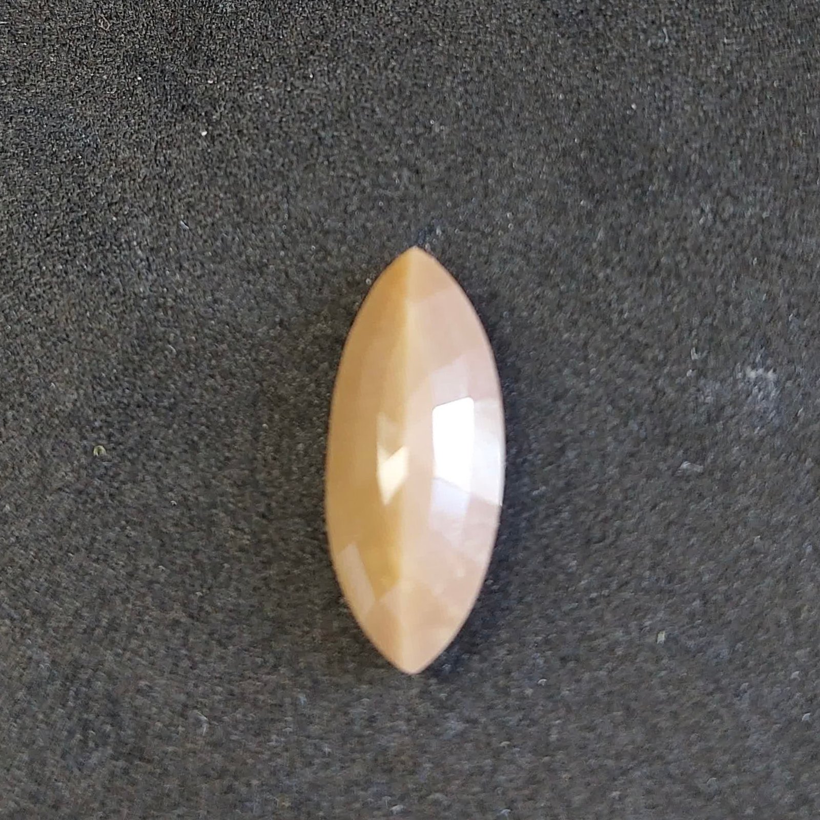 This genuine bless stone shows a soft beige color and refined marquise shape, crafted with a double‑sided faceted design that captures light beautifully from both surfaces. Elegant, balanced, and entirely natural — a true reflection of Mount Carmel’s earth tones and peace.