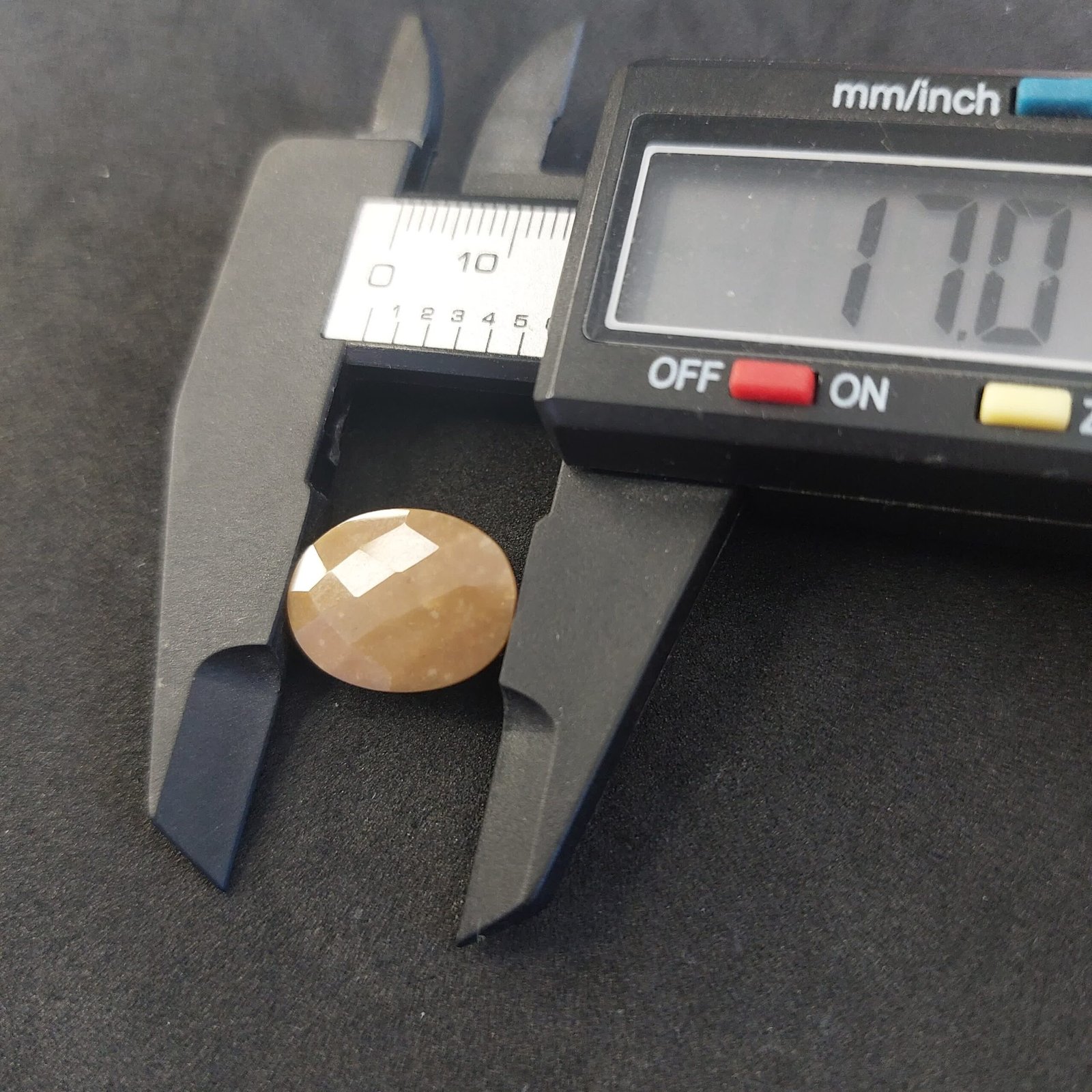 - Two-sided: Cabochon and Checkerboard cut.